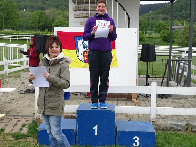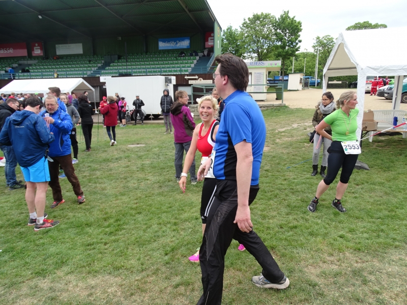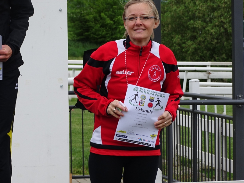 Sandra Klementz startete pünktlich um 11.30 Uhr die 11,6km Strecke. In diesem Jahr konnte sie sogar ihre bisherige Bestzeit um fast 2 Minuten toppen und lief mit einer grandiosen Zeit von 1:00:25h durchs Ziel. Sichtlich glücklich darüber wurde sie mit dem 2.Platz in ihrer Altersklasse der W35 und 5.Frau gesamt belohnt.