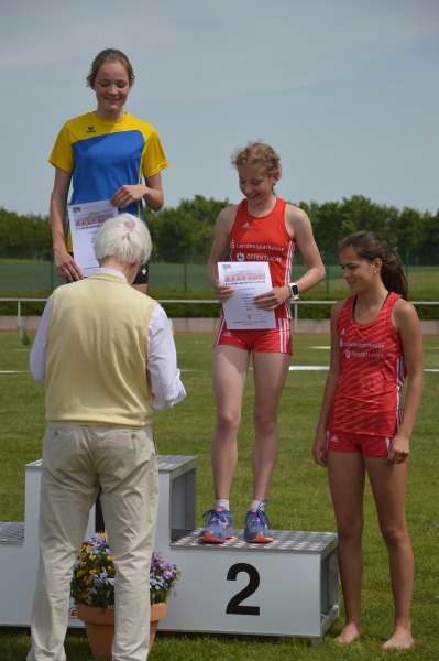 Michelle Nebendahl blieb- von Wachstumsschmerzen gehandicapt- deutlich unter ihren Möglichkeiten. Mit 1,29m im Hochsprung und 18,31m im Speerwurf belegte sie in der Altersklasse W14 damit Rang 5 bzw. 6.