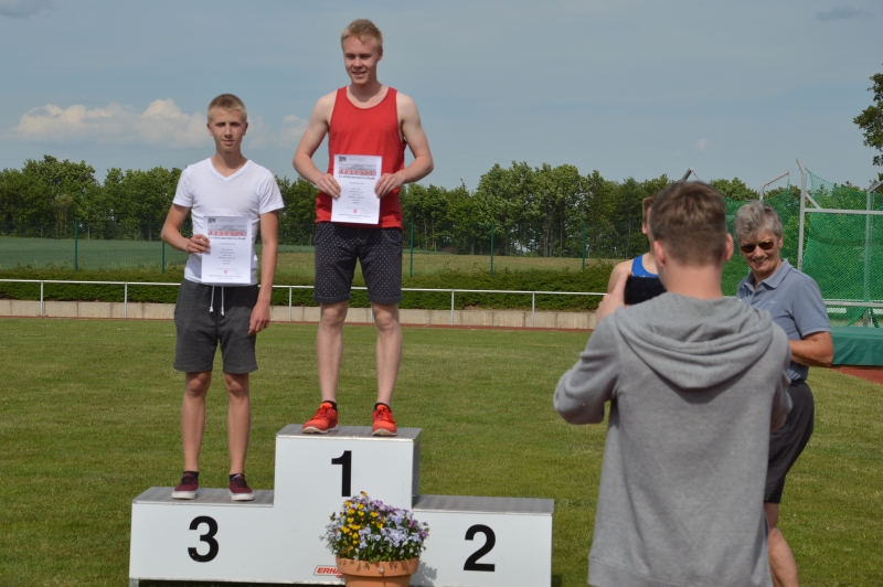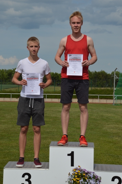 Unser beiden Mittelstreckler Max Singer und Tobias Bötticher setzen den Schlussakkord bei dieser BM. Über die 1500m in der Nachmittagshitze zeigten die beiden einen tollen Wettkampf. Max Singer siegte in 4:31,02 Min. und Tobias Bötticher wurde Dritter in 4:37,57 Minuten. Damit hat Max den Einzug in die Landesbestenliste geschafft und Tobias hat sich dort um 2 Plätze verbessert. Damit haben wir bei den LM über diese Distanz zwei Athleten im Aufgebot.
