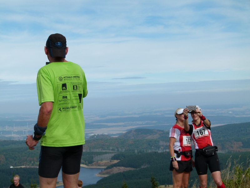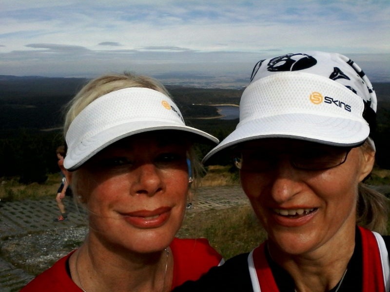 Oben angekommen erwartete uns, wie in jedem Jahr die Brockenhexe, die jeden Läufer mit ihrem Hexenbesen durch einen kleinen Klaps auf den Po freundlich begrüßte. Anschließend ging es dann 14km bergab. Davon liefen Sabine und Andrea 10km in einem niedrigen 4er Schnitt.