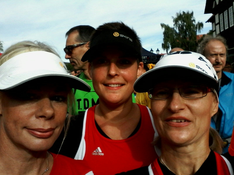 Die letzten 3km fielen allen 3 Vereinskameradinnen sehr schwer. Überglücklich und fast 10min schneller als 2014 kamen Sabine und Andrea gemeinsam Hand in Hand ins Ziel. In einer Zeit von 2.40.47h wurde Andrea 2. in ihrer Altersklasse der W50 und Sabine belegte Platz 7 in der W45. Ca.16min später finishte Iris stolz und überglücklich. In einer Zeit von 2.56.34h wurde sie 11. in ihrer Altersklasse der W40. Bei einem großen Becher Hasseröder Pils erholten wir uns anschließend von der Anstrengung und ließen den Wettkampftag ausklingen.