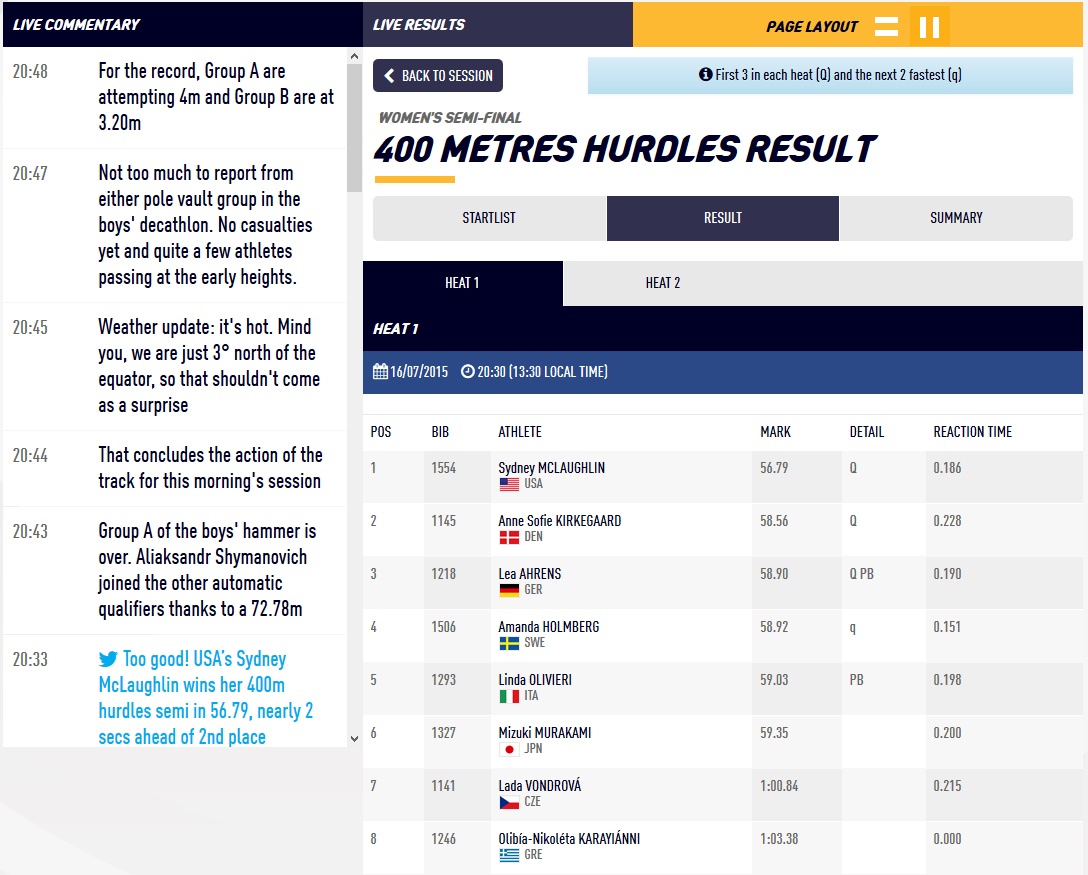 Mit 58,90 sec qualifizierte sie sich für das Finale.