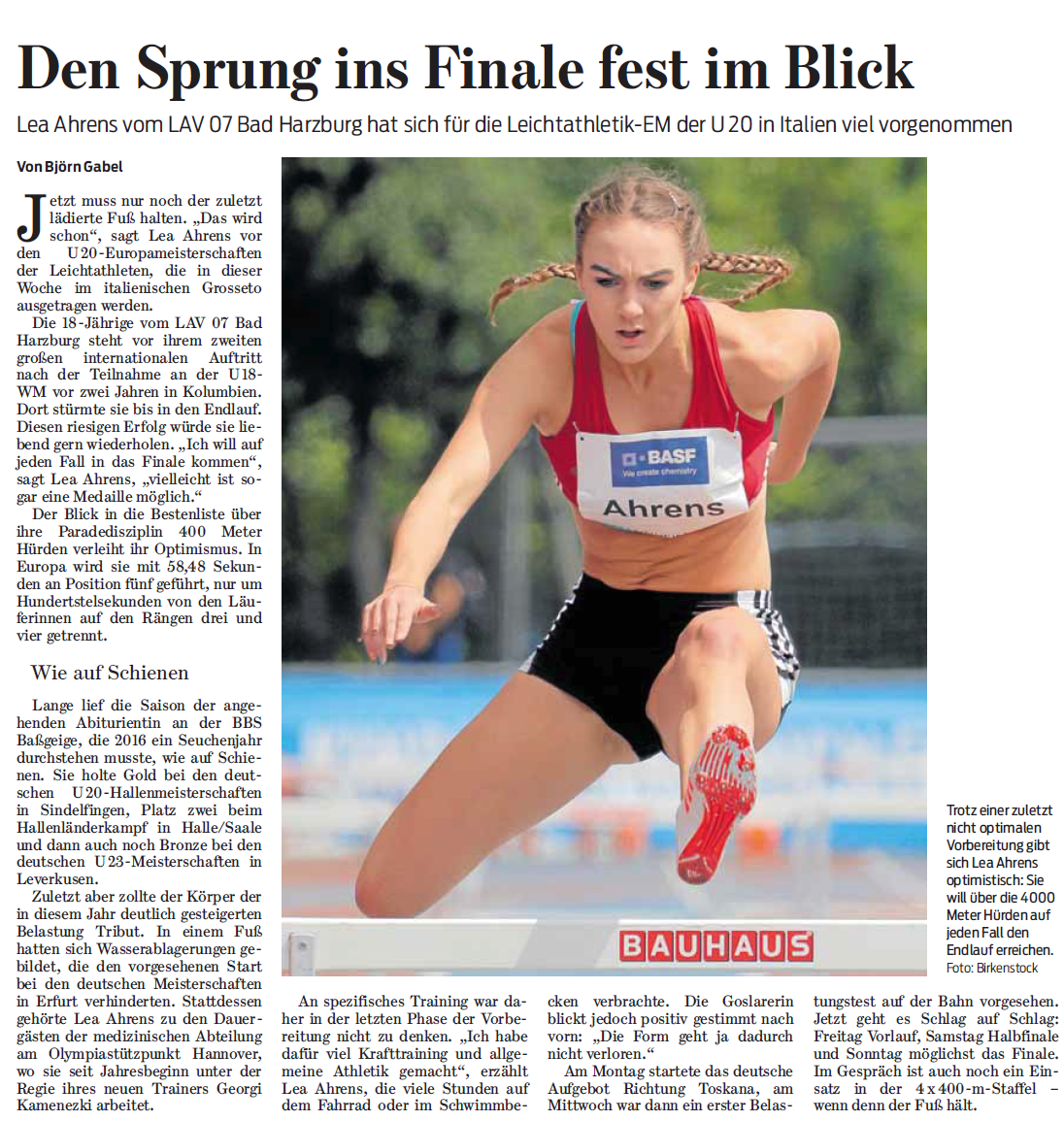 GZ vom 20.07.2017: Lea startet bei den EM in Italien