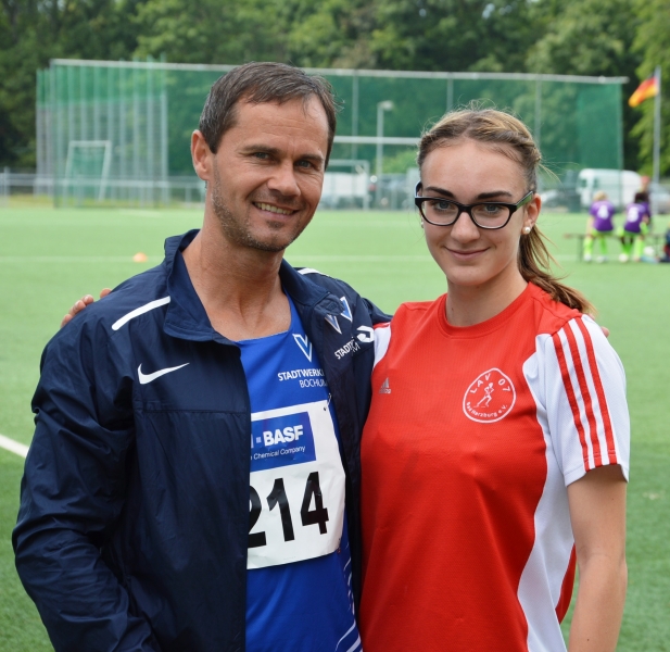 1: Der älteste und die jüngste Teilnehmerin der Gala in Mannheim. Lea Ahrens neben dem Sprint-Urgestein Alexander Kosenkow, der seit 15 Jahren fester Bestandteil der 4x100m Männerstaffel ist.