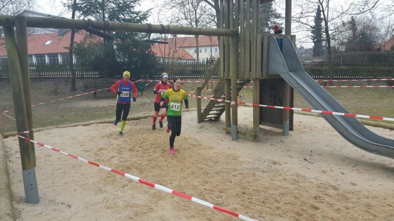 An dem eisig kalten und sehr windigen Tag mussten die Frauen auf dem Rundkurs insgesamt 3,84km, die Männer 6,66km hinter sich bringen. Die Strecke hatte einiges zu bieten; neben Hindernissen wie Strohballen, Sandkuhlen, Baumstämmen und Erdhügeln, sorgte auch stellenweise auftretende Glätte für einige Stürze unter den Teilnehmerinnen und Teilnehmern.