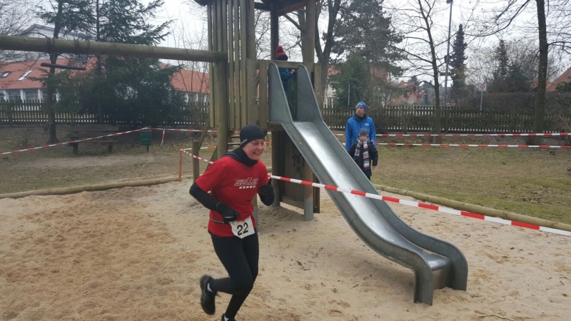 An dem eisig kalten und sehr windigen Tag mussten die Frauen auf dem Rundkurs insgesamt 3,84km, die Männer 6,66km hinter sich bringen. Die Strecke hatte einiges zu bieten; neben Hindernissen wie Strohballen, Sandkuhlen, Baumstämmen und Erdhügeln, sorgte auch stellenweise auftretende Glätte für einige Stürze unter den Teilnehmerinnen und Teilnehmern.