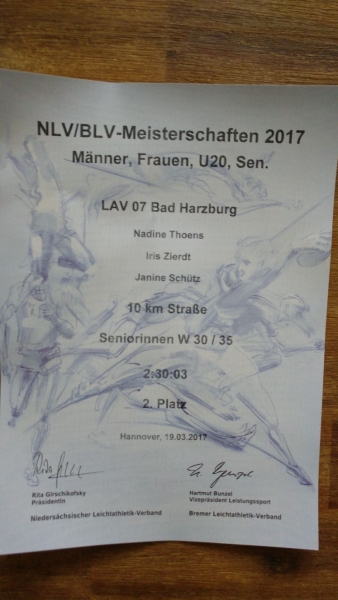 Am Sonntag, 19.03.2017 reisten 3 Läuferinnen der Tempolaufgruppe des LAV 07 zu den Landesmeisterschaften im 10 km Straßenlauf nach Hannover-Bothfeld.