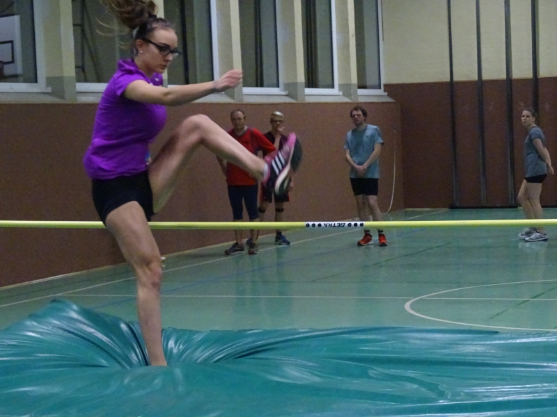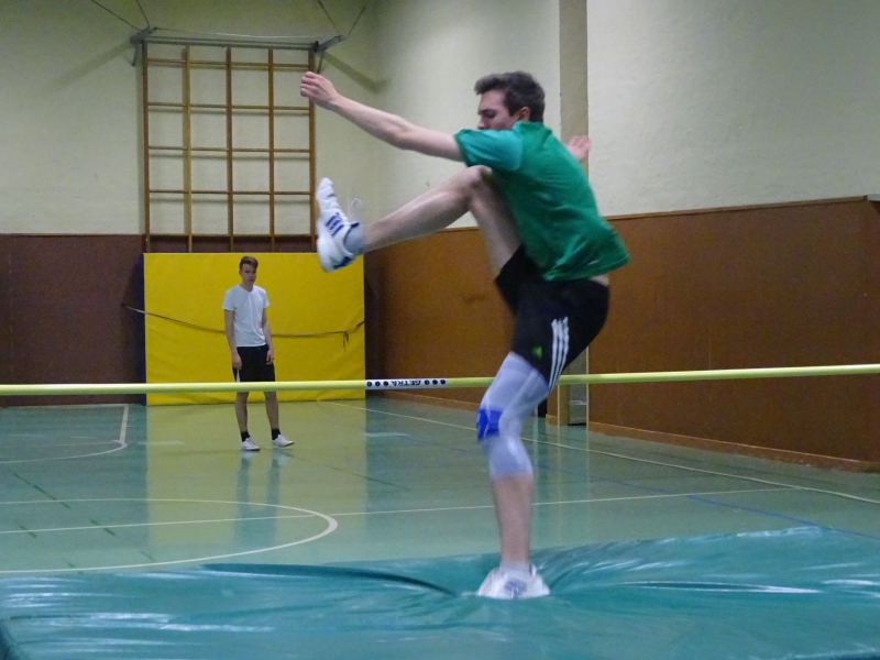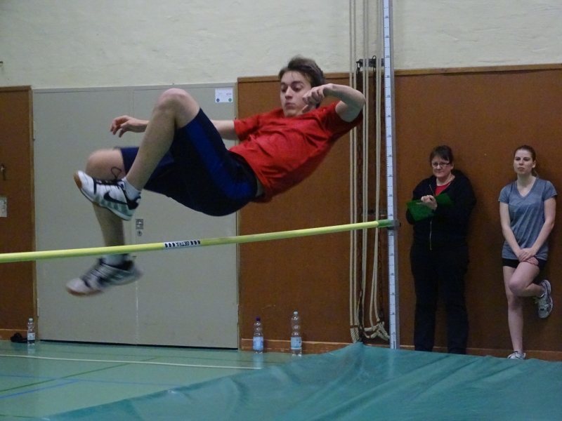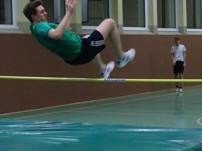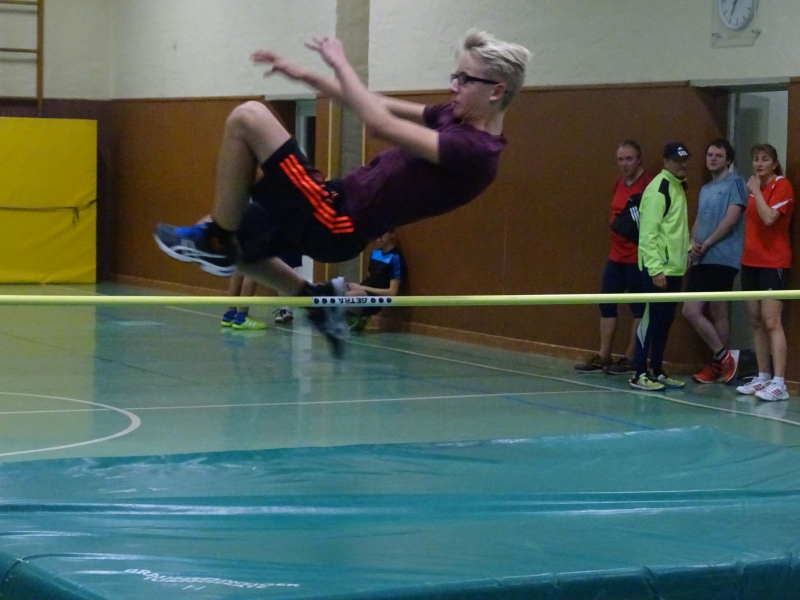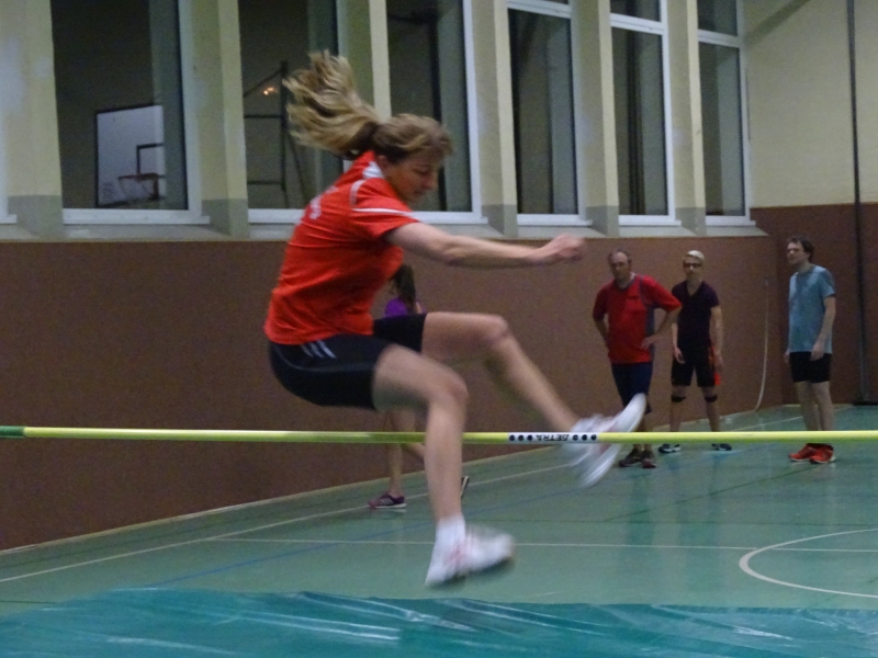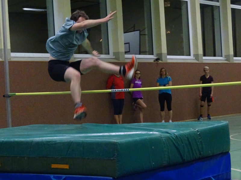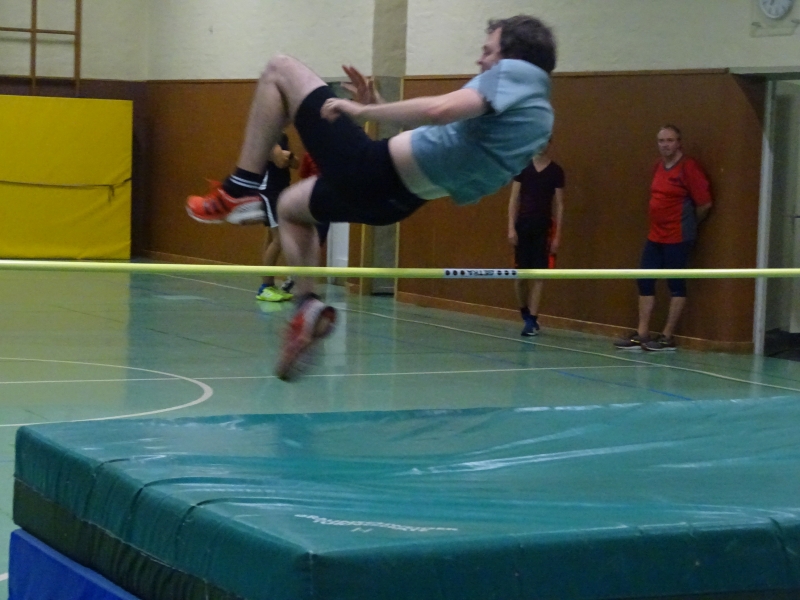 Bei den Männern traten gleich 10 Athleten an und zwar im Altersrahmen der MKU12 bis zur M50. Hier wurde ein Zweikampf zwischen den beiden besten LAV-Hochspringern Moritz Richter und Jan Bertram erwartet. Aufgrund seiner Körperlänge und keiner Handicapregelung hoffte auch Domi Lehmann auf eine Außenseiterchance. Im ersten Durchgang war bei 1,46m noch das halbe Feld dabei und die beiden „Langen“ Moritz und Domi konnten sich im Steigesprung mit 1,55m an die Spitze des Feldes setzen. Auch bei der ungewohnten Bewegungsrichtung beim Flopsprung von der schwachen Seite lag das Feld eng zusammen. Domi Lehmann stellte fest, dass er jahrelange von der falschen Seite gesprungen ist, denn er sprang hier mit 1,55m Bestleistung. Hier beendeten Jan und Moritz mit 1,58m den Durchgang als Sieger. In der Gesamtwertung ergab sich dann folgende Reihenfolge: 1. Moritz Richter, 313cm 2. Jan Bertram und Domi Lehmann, 310cm 4. Benni Gleisberg, 301cm, 5. Albin Bertram, 280cm 6. Tobias Bötticher, 271cm 7. Tim Nitzsche (MTV Brunonia), 254cm, 8. Maxi Kerwel, 251cm 9. Kai-Uwe Krüger, 246cm 10. Kai Gossing , 230cm.
