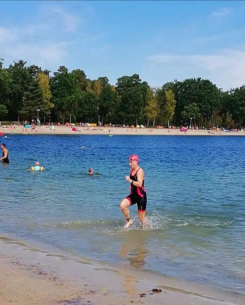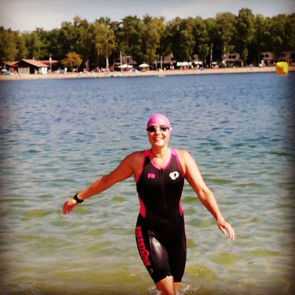 Andrea, die das 2. Mal am Tankumsee startete, hatte sich vorgenommen, ihre Zielzeit zum Vorjahr zu verbessern. Der Spaß sollte aber auch bei ihr nicht zu kurz kommen. Sie kam nach 1.29,52 Std. über die Ziellinie und war damit 1 min schneller als zum Vorjahr. Sie freute sich sehr und wird nun in 2 Wochen ihre erste Olympische Distanz in Angriff nehmen.