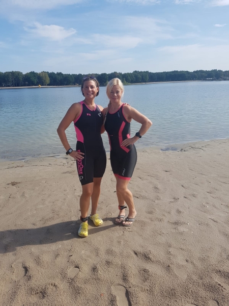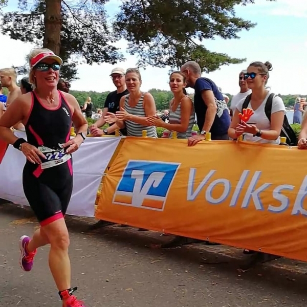 Als der Startschuss zum Schwimmen fiel, kam sie zuerst überhaupt nicht in den Wettkampf rein und es dauerte wirklich, bis Iris sich endlich im Wettkampfmodus befand. Umso mehr freute sie sich, als dann auf dem Rad alles perfekt lief und sie Frau um Frau aufholen konnte. Der leichte Wind der an diesem Tag herrschte, sorgte ein wenig für Abkühlung auf der Laufstrecke und so konnte auch sie sich tatsächlich zum Vorjahr verbessern. Sie kam nach 1.16.58 Std. über die Ziellinie und sicherte sich somit den 1. Platz in ihrer Altersklasse und den 16. Platz Gesamt von 157 Frauen. Das viele Training hatte sich also gelohnt. Auch Iris wird mit Andrea am 12.08.2018 in Altwarmbüchen die Olympische Distanz bestreiten.